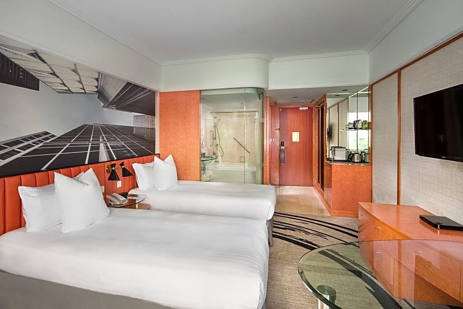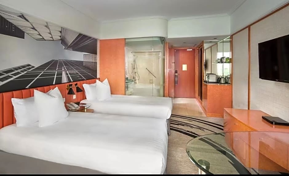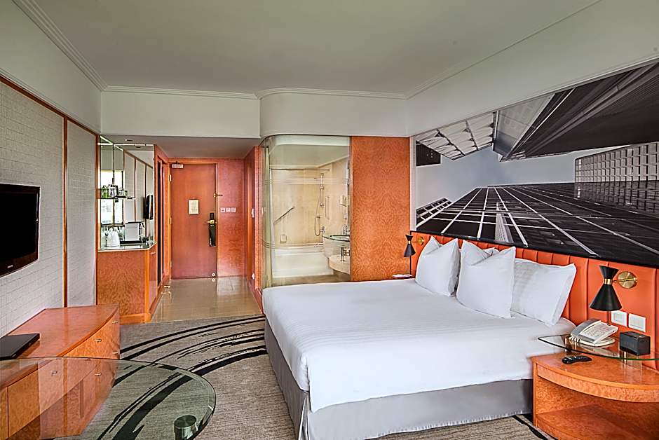 Executive Room Panoramic View Room, Lounge Access, 1 Queen Size Bed, Victoria Harbour Or Park View is 344 square feet and includes a queen-size bed 150-154 width plus desk, cable tv, hairdryer, tea and coffee making facilities , ironing set, safe, bathrobes, and slippers and is Wheelchair-accessible.