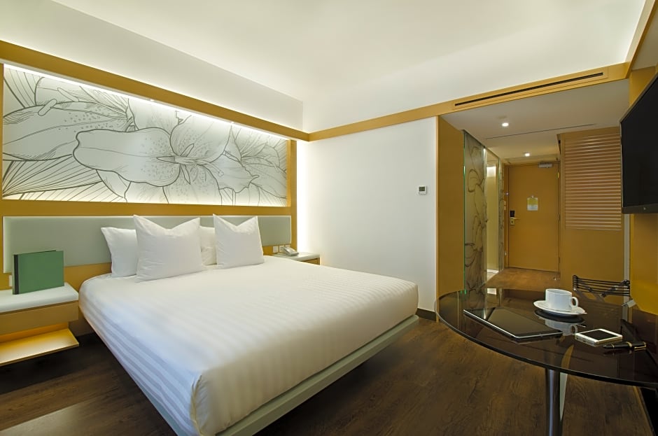 Premium Room City View , 1 Queen Size Bed, Top Floors, is 344 square feet and includes a queen-size bed 150-154 width plus desk, cable tv, hairdryer, tea and coffee making facilities , ironing set, safe, bathrobes, and slippers and is Wheelchair-accessible.
