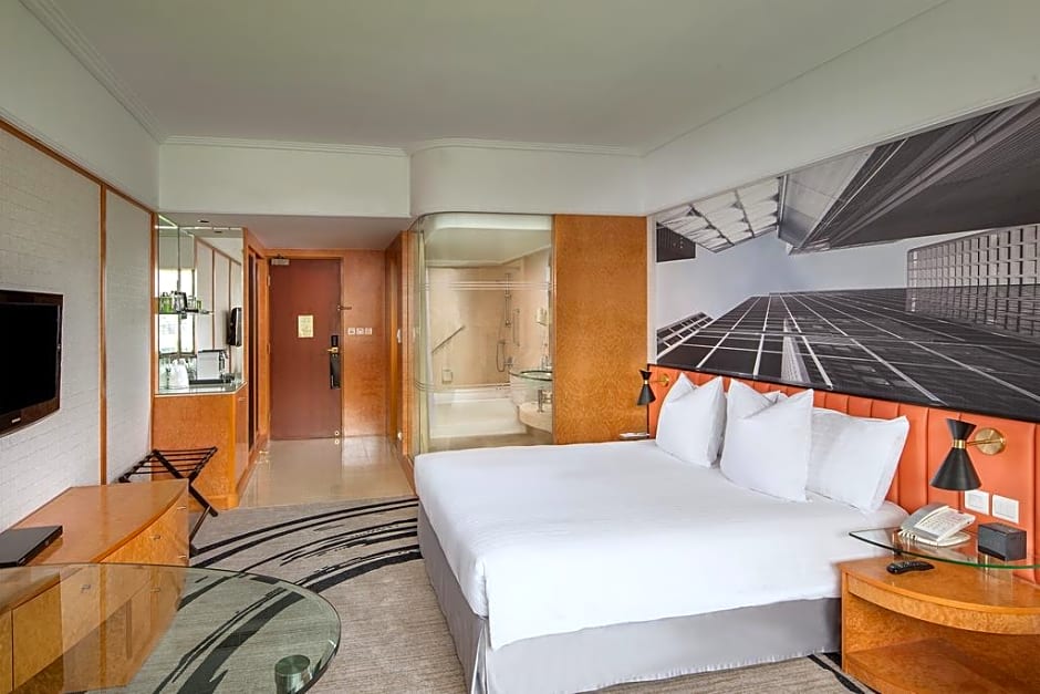 Executive Room Panoramic View Room, Lounge Access, 1 Queen Size Bed, Victoria Harbour Or Park View is 344 square feet and includes a queen-size bed 150-154 width plus desk, cable tv, hairdryer, tea and coffee making facilities , ironing set, safe, bathrobes, and slippers and is Wheelchair-accessible.