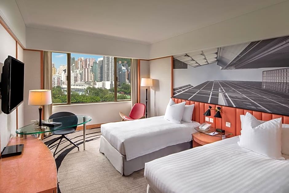 Deluxe Room Panoramic View, 1 Queen Size Bed, Victoria Harbour Or Victoria Park View is 344 square feet and includes a queen-size bed 150-154 width plus desk, cable tv, hairdryer, tea and coffee making facilities , ironing set, safe, bathrobes, and slippers and is Wheelchair-accessible.